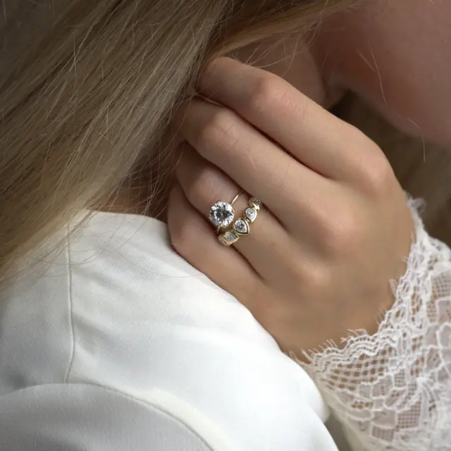 Her style is classic and polished. She would love an engagement ring that reflects her elegance and strength — perhaps a sleek solitaire with a modern setting or a custom engagement ring with clean lines and sparkling diamonds. A design that’s timeless and professional, just like her.
